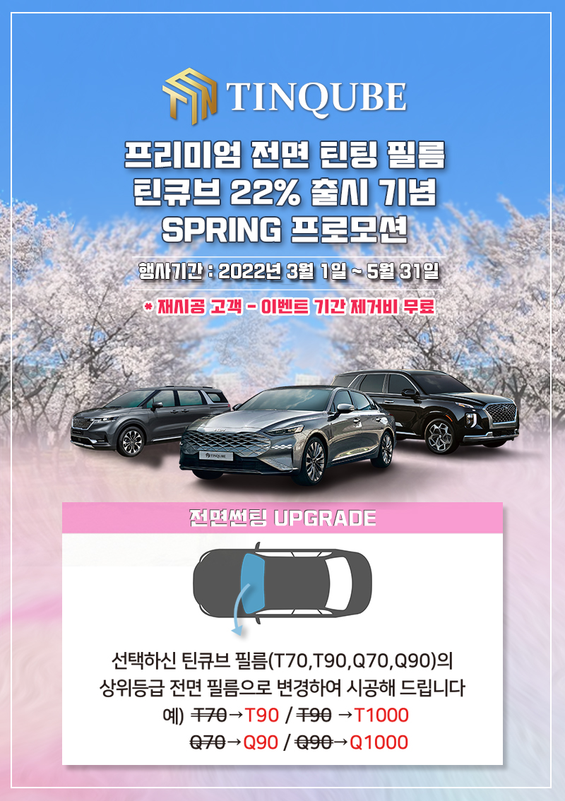 프리미엄 전면 틴팅 필름 틴큐브 22%출시 기념 봄 프로모션